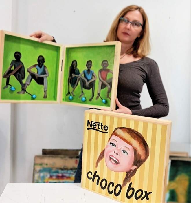 Ciljano za izložbu Hunger/Glad izradila sam instalaciju Nette Choco Boxes. Radi se o angažiranom konceptu na temu dječjeg ropstva na plantažama kakaovca kompanije Nestle. Ta tema je javnosti već prilično poznata, ali se prema njoj uglavnom odnosimo ignorantski. Kupujemo Nestleove proizvode i svoj novac dajemo u ruke robovlasnicima. Naravno, ne radi se samo o Nestleu, ali oni prednjače.