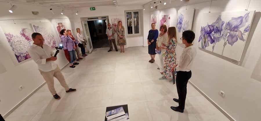 Na svečanom otvorenju nazočile su ravnateljica Pučkog otvorenog učilišta Rab Katarina Ribarić, direktorica Turističke zajednice Grada Raba Ivana Matušan i voditeljica Galerije Rab Barbara Marelić, a samo otvorenje svojim prisustvom uveličali su i gradonačelnik Grada Raba Nikola Grgurić te načelnik Općine Lopar Zdenko Jakuc. Na otvorenju voditeljica Galerije Rab Barbara Marelić pozdravila je sve prisutne te predstavila umjetnicu Edit Glavurtić, dok je povjesničarka umjetnosti i kustosica izložbe Sonja Švec Španjol predstavila ciklus radova „Skice iz Edena – Rascvjetavanje“ kojim se umjetnica predstavila rapskoj publici. Švec Španjol je istaknula kako Edit Glavurtić obrađuje jedan od najstarijih motiva prisutan još od samih početaka povijesti umjetnosti – motiv prirode. Prirodu iz koje smo potekli, prirodu s kojom smo, na samim počecima ljudske civilizacije, živjeli u skladu, te prirodu koju je čovjek s vremenom počeo beskrupulozno iskorištavati te u zadnje vrijeme sve češće svjedočimo elementarnim nepogodama i prirodnim katastrofama. Ciklus Edit Glavurtić nas poziva da obnovimo praiskonski odnos s prirodom. Svatko tko poznaje Edit Glavurtić zna da ona unutarnju radost življenja pretače u radost likovnog stvaralaštva što je na prvu vidljivo i na njezinim radovima. Umjetnica odabire dva međusobno vrlo različita cvijeta – raskošan i bogat božur te elegantan, profinjen, tankoćutan i transparentan iris koji čine polazište za gradnju likovne priče. Fokusirana na dvije nematerijalne dimenzije – tišinu i svjetlost, umjetnica zalazi dublje od figurativnog motiva u područje metafizičkog i duhovnog. U svojim studijama likovnih formi Edit Glavurtić vješto koristi uljenu slikarsku tehniku koja se nametnula kao tehnika koja najviše odgovara karakteru umjetničinog osjećanja materije prilikom realizacije likovne ideje. Autorica potencira glavnu karakteristiku ulja odnosno njegovog nevjerojatnog raspona boje od najdublje sjene do najvišeg svjetla što ponajbolje vidimo na svjetlosnim akcentima latica cvijeća božura i irisa na kojima svjetlost titra u punini svoje blistavosti. Švec Španjol zaključuje kako nas umjetnica svojim recentnim ciklusom poziva da se vratimo prirodi jer povratak prirodi znači i povratak samome sebi. Umjetnica Edit Glavurtić zahvalila se svima na dolasku, te organizatorima na divnoj suradnji i istaknula kako joj je čast da se može po prvi put predstaviti u Rabu u predivnom novom izložbenom prostoru Galerije Rab. Ravnateljica Pučkog otvorenog učilišta Rab Katarina Ribarić službeno je otvorila izložbu.