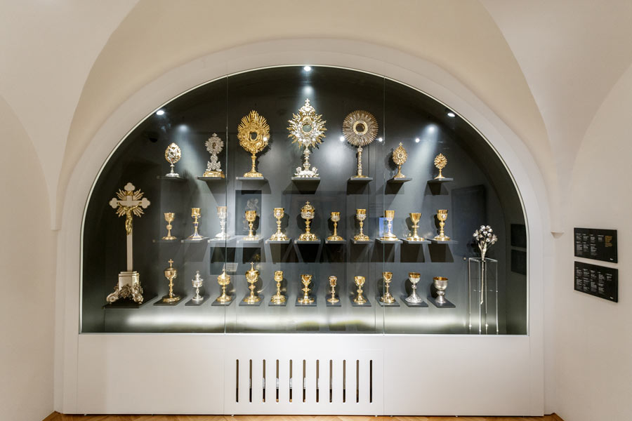Riznica je bogata vrijednim umjetničkim predmetima. U njoj se čuvaju predmeti umjetničkog obrta, zbirka liturgijskog posuđa (kaleži, pokaznice i relikvijari), među kojima se ističe zbirka kaleža od 16. do 20. stoljeća, zatim vrijedna zbirka liturgijskog ruha (misnice, pluvijal i dalmatika) te u samostanskoj galeriji starih majstora vrijedne slike i skulpture od 17. do 20 stoljeća.