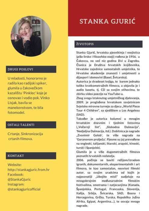 Glasoviti španjolski portal ‘Crear en Salamanca‘ u svojem najnovijem broju objavio je dvadeset pjesama Stanke Gjurić, u prijevode ugledne hispanictice Željke Lovrenčić, književnice (piše eseje, kritike i putopise), prevoditeljice, urednice i proučavateljice hrvatskoga iseljeništva, osobito onoga na španjolskome govornom području.
