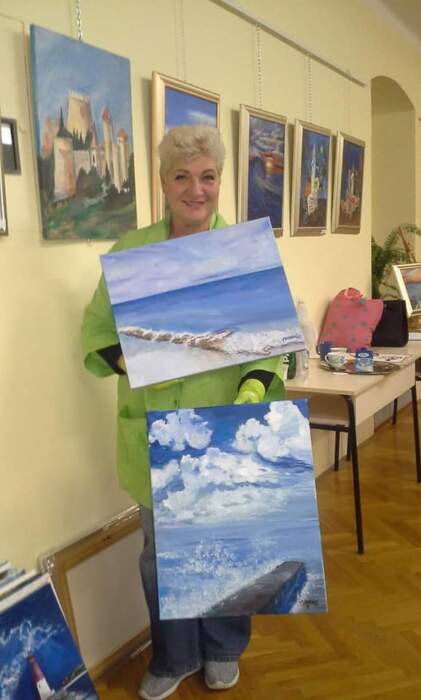 Danas predstavljamo slike Biserke pl. Vuković. Autorici su najčešće teme more, priroda i anđeli. Na slikama prevladavaju nježne plave boje. Do sada je imala 8 samostalnih izložbi slika u Hrvatskoj kao i BiH, Srbiji, preko 50-desetak raznih slikarskih izložbi i druženja, oko 10-desetak Međunarodnih i 15 likovnih kolonija diljem domovine.