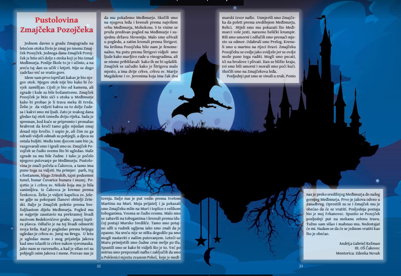 Nakon niza peripetija slikovnica Tajne priče Zmajčeka Pozojčeka  ugledala je svjetlo dana! Zahvaljujući brojnim donacijama građana i tvrtki te uz sufinanciranje sredstvima Grada Čakovca, Općina Nedelišće, Gornji Mihaljevec i Mala Subotica djeca nisu ostala razočarana jer trudili su se maksimalno istražiti povijest svog mjesta, kraja, običaja, legendi…ubaciti u priču Zmajčeka Pozojčeka i sve to literarno ukomponirati u poučnu priču! U udruzi Mlada pera odlučili su nikako ne razočarati djecu i usprkos svim nevoljama koje je sa sobom donijela korona kriza miris boje svježe tiskane slikovnice širi se Čakovcem, Međimurjem, Nardom, Krapinom, Pulom, Zagrebom, Bjelovarom, Velikim Pogancem, Zadrom, Osijekom…ma cijelom Hrvatskom!