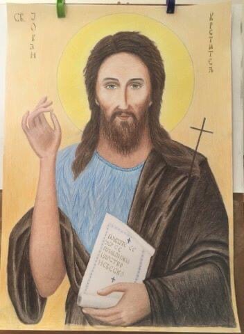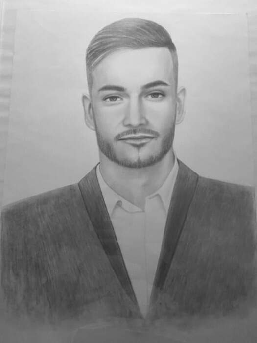 nešto manje portreta sa olovkom u boji i suhim pastelom na papiru i portret ulje na platnu.